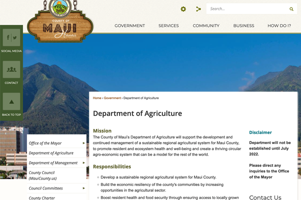Maui County launches Department of Agriculture web page
