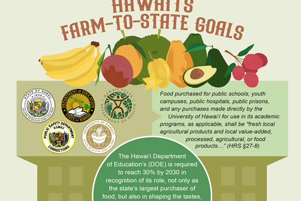 By the year 2030, the Hawaii Department of Education (HIDOE) will purchase 30% of its produce and meat for student meals from locally sourced vendors—that’s what’s required by Act 175, signed in 2021 (codified as HRS 302A-405.6).