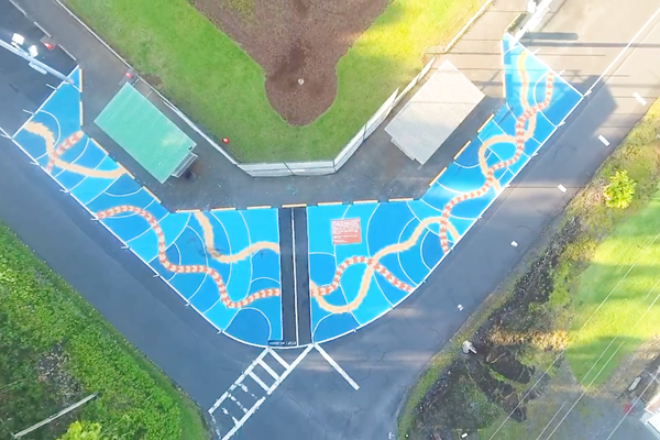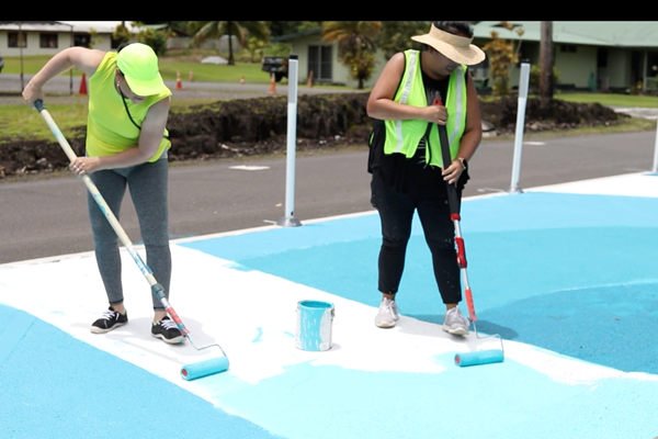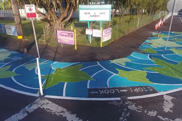 Originally conceived during a 2015 Safe Routes to School planning effort, the Keaukaha Quick Build created a continuous walking and biking path around the school campus and fields, which now connects new and existing pathways by realigning parking stalls, creating community murals, and installing protective delineators. All portions of the Hawaiian Homestead neighborhood are within a couple of blocks of this 2,000-foot pathway for accessing the park, schools, and the other neighborhood facilities located in the community’s “center.” Quick-build projects are projects that take less than a year to plan and implement, and use flexible installation materials, such as paint and moveable barriers to catalyze long-term change in our neighborhoods and streets, helping ensure that the transportation system and projects serve our communities' needs and visions more dynamically.