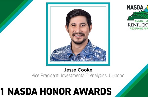 Honored for exemplary efforts performed in tandem with the State of Hawaii Department of Agriculture (HDOA) to support local farmers, Ulupono Initiative was the recipient of the 2021 National Association of State Departments of Agriculture (NASDA) Public-Private Partnership Award, presented at the 2021 NASDA annual meeting earlier this week in Louisville, Kentucky.